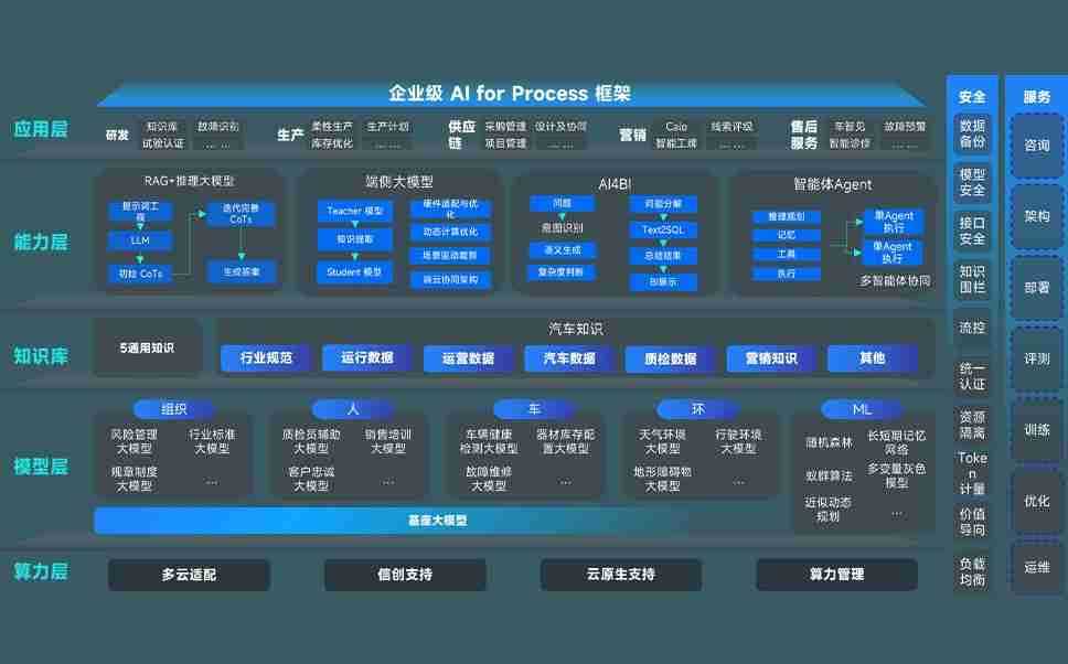 太阳成集团tyc151cc问学智车解决方案是一套基于AI技术的汽车行业智能化系统,,覆盖从底层算力到顶层AI应用的全栈方案。。。。方案由算力层、、、模型层和应用层组成:算力层,,,方案支持多种一体机配置,,,,具备云端灵活部署、、多云适配以及动态优化计算资源的能力;模型层,,,太阳成集团tyc151cc问学平台版提供了企业级AI应用一站式构建与管理平台,,支持基于后训练强化技术的汽车企业专属模型的训练、、评测和运营;应用层,,太阳成集团tyc151cc问学DeepSeek版提供包括超级员工、、、、智能招采、、、智能营销、、、、智能客服、、、AI for BI等一系列解决方案,,,可助力汽车行业实现数字化转型,,,,让管理更智能、、、、响应更敏捷。。。